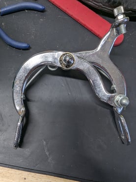 Next, we cleaned up the brake calipers and painted the deck bolts. We also cleaned the deck top, sides, and bottom using a microfiber towel and Simple Green. If you have bright steel parts or chrome parts you can use a SOS Pad (the brand name one) and water. As long as your SOS Pad has the blue soap keep scrubbing and you'll shine chrome and bright metal in one easy step. Rinse well and dry. An old biker (the Harley kind) and hot rodder taught us that trick.