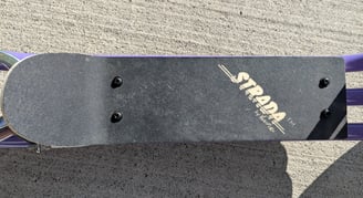 The headset gets leprechaun grease too. When aligning the rear tire on these scooters it is always far from perfect. The mags warp over time and these frames have some flex. Get it as close as you can. Our rear dropouts are about 1/8 inch off! Instead of period correct brake pads we switched to clear Odyssey Ghost Pads for more stopping power and less streaking on the white mags. The downside is these pads have a short life span.